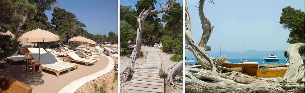 Tip: Also for dinner, long after the sun afionados have left the beach, CBBC is a true hedonistic Ibiza experience. Practical notes: paying car parking is always available at around 5€ per day. One of Ibiza´s top sandy beach.